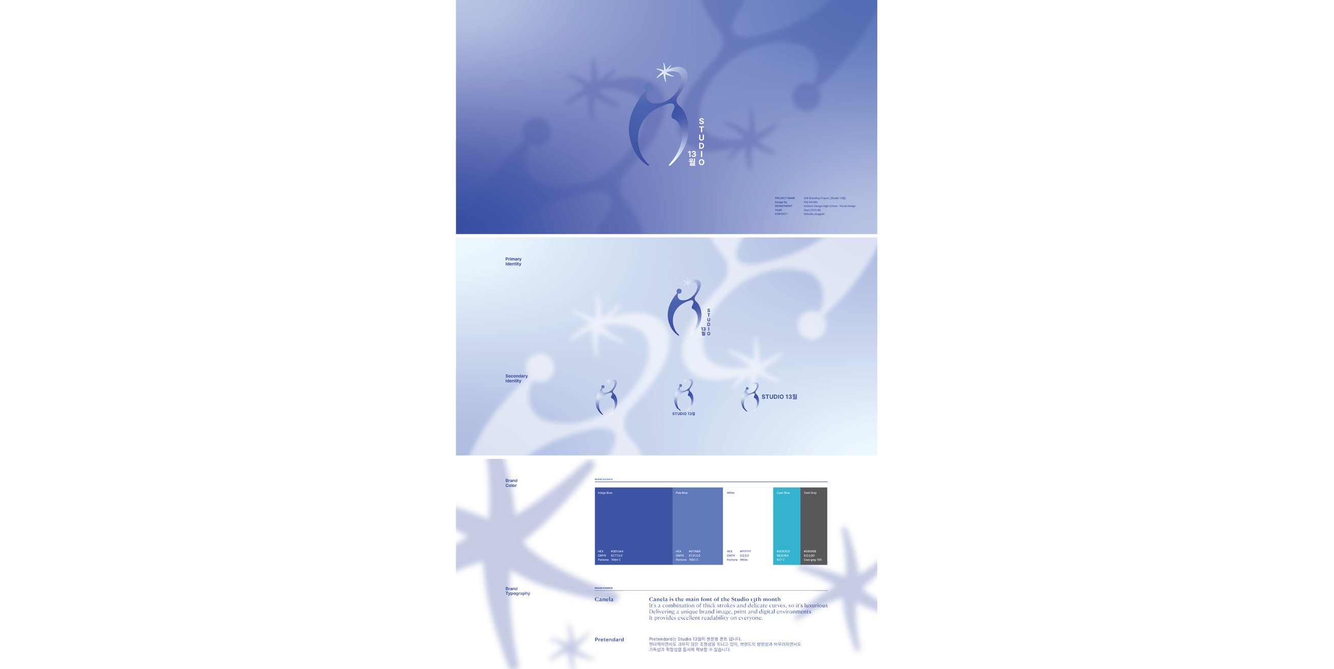 수업은 실제 브랜딩 프로세스를 압축한 단계별 구조로 진행되었습니다. 먼저 클라이언트의 입장에서 브랜딩 의뢰서를 작성하고, 이어서 컨설턴트의 시각으로 니즈를 분석하고 솔루션을 기획하며 브랜딩 과정을 양쪽에서 체험했습니다. 이후에는 리서치, 네이밍, 무드보드, 아이덴티티 디자인(로고·심볼 제작), 기초 조형과 시각 보정 훈련을 통해 디자인 디테일에 대한 이해를 넓혔습니다. 마지막으로 아이덴티티 설명, 목업 제작, 브랜드 가이드라인 정리까지 이어가며 결과물을 포트폴리오 형태로 아카이빙했습니다.